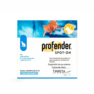 Profender Spot-On de Bayer es el desparasitante interno libre de estrés eficaz, fácil de usar y seguro para tu gato, porque basta con aplicar detrás del cuello. ¿Cómo funciona para parásitos internos si se aplica externo? Los ingredientes activos pasan a través de la piel, viajan por los vasos sanguíneos y llegan al intestino del gato, causando el desprendimiento y muerte del nematodo. Una vez eliminado el nematodo es expulsado junto con las heces de los gatos.