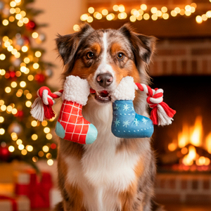 Latipaw Holiday Juguete de Cuerda con Botas Navideñas de Peluche para Perro, Chico