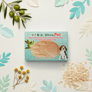 ¡Haz que tu perro se sienta feliz y se mantenga limpio con el jabón natural de B.d Olivo! Hecho con ingredientes naturales super nutritivos e hidratantes como el aceite de oliva, manzanilla, cacahuananche y la exfoliante avena, este jabón es la opción perfecta para mantener la piel de tu perro suave y libre de irritaciones. Además, su delicado aroma dejará a tu perro fresco y relajado después de cada baño. ¡Entregale a tu compañero de aventuras el cuidado que se merece!