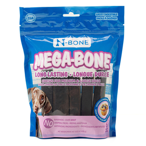 ¡Satisface el instinto de masticación de tu perrito de forma deliciosa y saludable con N-Bone! Gracias a su elaboración libre de carnaza y sin ingredientes artificiales, los premios masticables Mega-Bone son una opción natural e irresistible con la que tu perrito disfrutará de deliciosas sesiones de masticación, las cuales ayudarán a reducir el aburrimiento y evitarán que muerda objetos inapropiados.