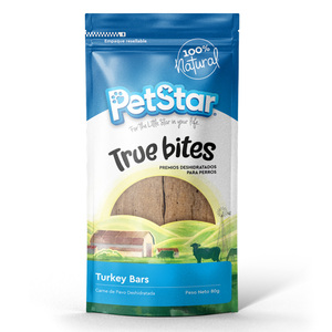 True Bites de PetStar son deliciosos premios deshidratados 100% naturales ideales para consentir a tu perro o para premiar durante las clases de entrenamiento. Sin aditivos ni conservadores gracias al proceso de deshidratado para mantener todo el sabor y nutrientes.