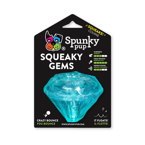 Tan brillante como un diamante, los juguetes de Spunky Pup de la línea Squeaky Gems se convertirán en los favoritos de tu mascota. Con un diseño increíble de gema brillante, este juguete permite un rebote irregular a la hora del juego gracias a su forma de diamante. Además de contar con un squeaker, este juguete flota en el agua para llevar la diversión a todo terreno.