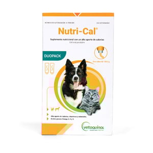 Nutri-cal es un suplemento nutricional formulado a base de vitaminas, minerales y ácidos grasos esenciales, como Omega 3, 6 y 9 que proporcionan un alto aporte energético, siendo ideal para animales convalecientes, en proceso postoperatorio, de trabajo, gestantes, en lactancia, en crecimiento, geriátricos o aquellos que atraviesan situaciones de estrés o enfermedades infecciosas de origen viral, bacteriano o parasitario. Su uso favorece la recuperación, el rendimiento y el bienestar general de las mascotas.