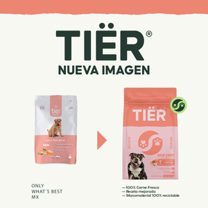 cambio de alimento, para acostumbrarlo a TIËR hágalo gradualmente en un periodo de una semana, ya que un cambio repentino en el alimento puede provocar trastornos gastrointestinales. Guarde el paquete cerrado en un lugar seco y fresco, protegido de la luz solar directa.