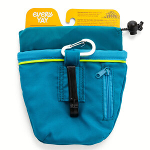 El dispensador de premios de EveryYay te ayudará con todo el entrenamiento y las recompensas que tengas para tu compañero de aventuras. Se engancha fácil y cómodamente al pantalón o al cinturón para que puedas mantener las manos libres, tiene un cierre de cordón que ayuda a mantener los premios contenidos para que puedas tomarlos según los necesites en tus sesiones de juego o de entrenamiento.