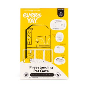 ¡La reja autoportante de EveryYay es la solución perfecta para mantener a tu compañero de aventuras seguro y protegido! Un moderno y atractivo diseño tipo biombo que ayuda a delimitar espacios en tu hogar con facilidad y que puede mantenerse en pie por si misma. Su amplitud ajustable se adapta a aberturas de hasta 183 cm de ancho, perfecta para puertas y pasillos. ¡Crea un entorno seguro para tu mascota sin comprometer el estilo de tu hogar con la reja autoportante de EveryYay!