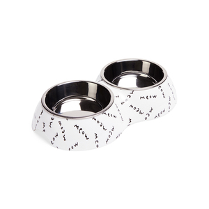 EveryYay Set Base de Melamina Diseño Meow con Doble Tazón para Gato, 1 Pieza