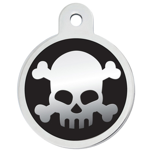 - Placa de identificación circular grabable diseño cráneo relleno epoxy para animales de compañía.