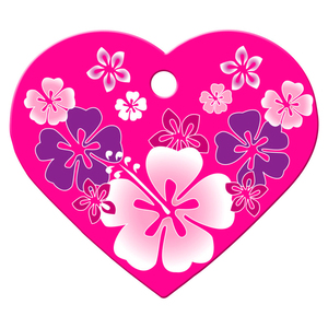 - Placa de identificación grabable con diseño Hawaii corazón rosado para animales de compañía.
