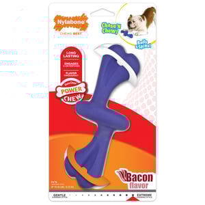 Observa cómo tu perro gira y persigue el juguete rodante para perros Power Chew mientras disfruta de un emocionante momento de masticación. Este juguete para masticar tiene dos extremos en forma de hueso de fácil agarre que son cómodos de sujetar y masticar. Además, está hecho de nylon resistente que satisface a los masticadores más potentes y tiene un sabroso sabor a tocino que mantendrá a tu perro feliz, ocupado y fomentará hábitos de masticación positivos.