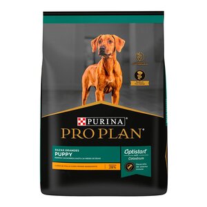 Purina Pro Plan Puppy Razas Grandes con OptiStart y carne real de pollo es un alimento especializado que elimina la brecha inmunológica en los cachorros y provee nutrición completa que ayuda a los cachorros a crecer sanos y fuertes. Purina Pro Plan Puppy Razas Grandes con OptiStart y carne real de pollo está formulado con Calostro, fuente natural de probióticos y anticuerpos que promueven un sistema digestivo estable para que el cachorro pueda absorber una mayor cantidad de nutrientes. Contiene proteínas de calidad de carne fresca de pollo, altamente digeribles para desarrollar músculos fuertes. Con DHA y EPA del aceite de pescado y alto contenido de ácidos grasos Omega 3 que ayudan en el desarrollo del cerebro y la maduración de la visión. Con un optimo balance de calcio y fósforo que apoya el desarrollo de huesos y dientes fuertes. Esta fórmula tiene croquetas del mayor tamaño para cachorros de razas grandes, con ingredientes que incluyen micronutrientes, factores de crecimiento del calostro y minerales esenciales que ayudan a estimular el crecimiento apropiado para que crezcan saludables.