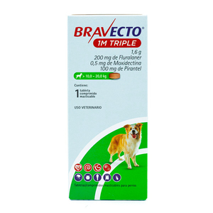 Bravecto 1M Triple Tableta Masticable Antiparasitaria Externa e Interna para Perro, 10 a 20 kg