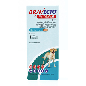 Bravecto 1M triple 3.2 g ...Perros con un peso de 20 a 40 kg