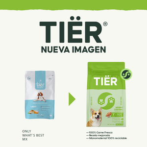 cambio de alimento,  para acostumbrarlo a TIËR hágalo gradualmente en un periodo de una semana, ya que un cambio repentino en el alimento puede provocar trastornos gastrointestinales. Guarde el paquete cerrado en un lugar seco y fresco, protegido de la luz solar directa.