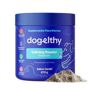 Dogelhty Calming Powder es un suplemento calmante formulado por veterinarios que contiene una poderosa mezcla de ingredientes naturales que ayudan a regular el sistema nervioso, apoyar un estado de ánimo equilibrado, mejorar la calidad del sueño y promover la relajación muscular. El conjunto de estos beneficios, ayuda a reducir la hiperactividad y el estrés sin causar efectos sedantes en los perros, siendo especialmente beneficioso en situaciones como viajes o visitas al veterinario. Además, es libre de granos, rellenos e ingredientes artificiales y tiene un delicioso sabor a cerdo que le encantará a tu mejor amigo.
