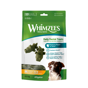 Whimzees Alligator Premio Dental Vegetariano Mediano para Perro, 12 Piezas
