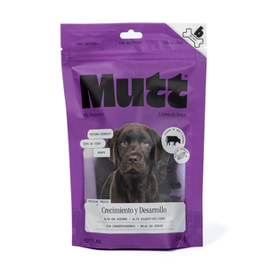 Mutt Crecimiento y Desarrollo Premios Tipo Jerky para Cachorro Receta Hígado de Res, 100g