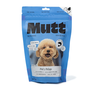 Demuéstrale a tu mascota cuánto te importa su salud y felicidad con los premios naturales Piel y Pelaje de Mutt. Ideales para perros adultos de todas las razas, estos premios están elaborados con atún, una fuente naturalmente rica en proteína y omega 3 que ayudará a reducir la caída de pelo y la inflamación de su organismo. Consiente a tu mascota con estos deliciosos y nutritivos premios de la mejor calidad.
