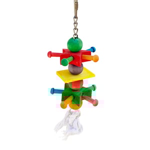 Este juguete de Espuela vaquera de A&E Happy Beaks, es un gran juguete que le encantara a tus aves para masticar. Con las bolas de madera de 2.5 cm intercaladas entre tablones de madera de 3.8 cm, las espuelas que destacan este juguete tienen 7.6 cm de ancho. Los juguetes para masticar son importantes para ayudar a las aves a mantener la salud de los picos y los músculos de la mandíbula. Recuerda que es indispensable ofrecer enriquecimiento al habitat de tus aves, para evitar comportamientos indeseados que pueden afectar su salud.