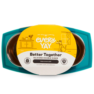 El comedero doble de silicón aqua EveryYay Better Together con cuencos de acero inoxidable mantiene la comida y el agua en un solo lugar. Incluyendo 2 tazones de acero inoxidable, este comedero doble está diseñado con una base de silicona flexible para ayudar a contener los líos a la hora de comer. También puedes meter el juego directamente en el lavavajillas para mantener la mesa limpia y agradable entre banquetes.