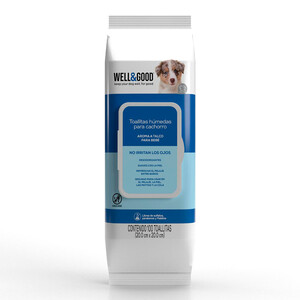 Las toallitas húmedas desodorizantes para cachorros de Well & Good ayudan a mantener a tu pequeño limpio por más tiempo. Su fórmula, especialmente diseñada con aloe vera y avena limpian suavemente la piel y el pelaje, evita la irritación de ojos y deja un agradable y fresco aroma a talco para bebé.