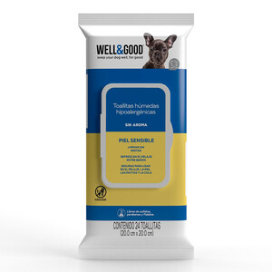 Well & Good Toallitas Húmedas Hipoalergénicas sin Aroma para Perro, 24 Toallitas