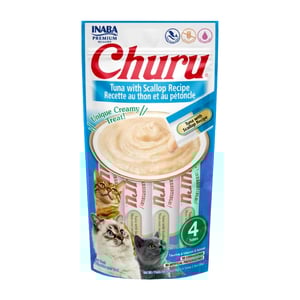 SKU 142219Deleita a tu minino con los deliciosos sabores y la nutrición saludable de Churu de Inaba con este paquete variedad de Atún y Atún con Viera. Cremoso premio que hará ronronear hasta al gatito más exigente. Churu contiene alto nivel de humedad, por lo que agrega hidratación a la dieta ayudando a la salud general. Puedes sentirte tranquilo consintiendo a tu pequeño con las golosinas para gatos de Inaba ya que son naturales libres de ingredientes artificiales.