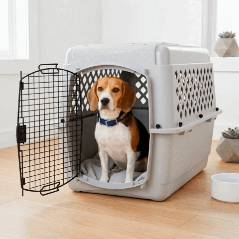 INSTRUCCIONES PARA ENSAMBLE: 1. Separa las dos piezas de la transportadora. 2. Coloca la cubierta sobre la base. 3. Insertar la puerta y cerrar la transportadora 4. Inserta los tornillos de metal desde la parte inferior de la base a través de los agujeros y asegúralos con tuercas plásticas. Aprieta las tuercas usando tus manos. Revisa y asegura nuevamente después del primer uso. ¡Listo! PRECAUCIÓN: DISEÑADA EXCLUSIVAMENTE PARA USO EN ANIMALES. Diseñada para usarse en entrenamiento, transporte y/o como guarida. Elegir la transportadora correcta dependiendo del peso y medidas de la mascota. Para evitar accidentes cerrar puerta y seguros completamente. Supervisar a la mascota hasta que la misma se encuentre cómoda al interior. Revisar regularmente la condición del producto y remplazar de manera inmediata partes dañadas. IMPORTANTE: Antes de utilizar el producto revisar instrucciones y precauciones. No es recomendable para perros que muerdan fuerte o perros que gusten de morder plástico. Antes de viajar con tu mascota, consulta los requerimientos de la aerolínea para escoger la transportadora ideal. ¿Cómo tomar las medidas de mi mascota? ¡Muy fácil! La altura se mide con un flexómetro desde el piso hacia arriba hasta llegar a la cabeza del perrito en línea recta. El largo se mide desde el pecho hasta la cola.