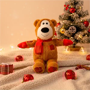- Oso grande de peluche con textura afelpada y diseño navideño.