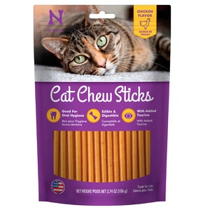 - Cat Chew Sticks de N-Bone sticks masticables de apoyo dental con diseño de stick para gato.