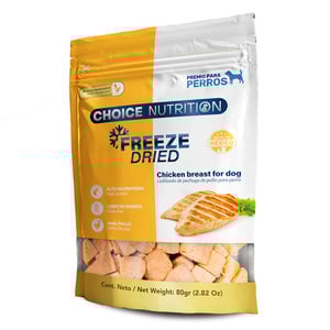 - Choice Nutrition Freeze Dried Premio Liofilizado de Pechuga de Pollo para Perro, 80 g >MARCAS>Choice Nutrition>Choice Nutrition Freeze Dried Premio Liofilizado de Pechuga de Pollo para Perro, 80 g