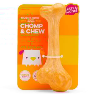 - Juguete dental masticable con forma de hueso de pollo para perro de Leaps & Bounds.