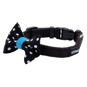 - Collar color negro con un moño moteado.