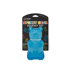 Tan dulce como un osito de gomita, los juguetes de Spunky Pup se volverán los favoritos de tu mascota. Este osito de goma cuenta con un increíble diseño que, al momento del juego, permite un rebote irregular por su divertida forma. Además, tiene un squeaker en su interior, súper ruidoso, que duplicará la diversión durante el juego.