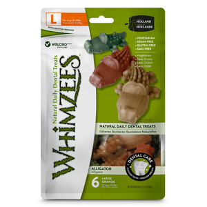 Whimzees Alligator Premio Dental Vegetariano Grande para Perro, 6 Piezas