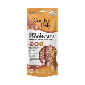 Los premios Good N Tasty son deliciosos snacks cremosos elaborados con 3 tipos de proteína para lograr conquistar incluso a los paladares más exigentes. Vienen en un empaque único en forma de cuchara que ayuda a evitar derrames. Además, gracias a su alto nivel de humedad e ingredientes de primera calidad, son una excelente manera de agregar hidratación a la dieta de gatos de todas las etapas de vida y apoyar su bienestar integral.