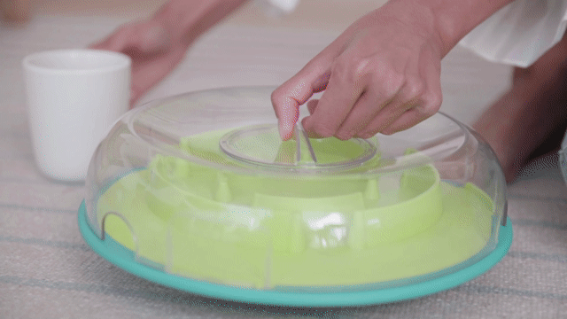 Reemplaza el tazón de tu mejor amigo con el Wobble Bowl para hacer que la hora de comida sea divertida. Esta combinación de alimentador lento y rompecabezas para premios ayudará a hacer mas lento el ritmo de alimentación de tu perro mientras ejercita su mente.
