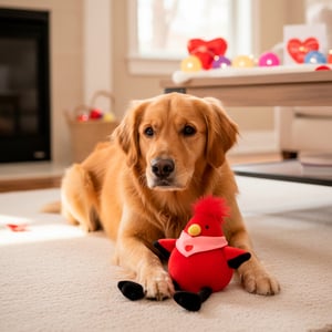 - Pájaro cardenal de peluche con diseño de San Valentín.