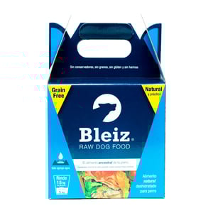 Bleiz alimento natural deshidratado sin granos está elaborado con ingredientes frescos ofreciendo un gran sabor y olor que a tu perro le encantará. Se deshidrata soplando aire a través de los ingredientes a temperaturas controladas para remover la humedad y conservar los nutrientes olores y sabores naturales. Gracias a su práctico empaque es fácil de transportar y guardar. ¡Solamente agrega agua, espera 5 minutos y sirve!