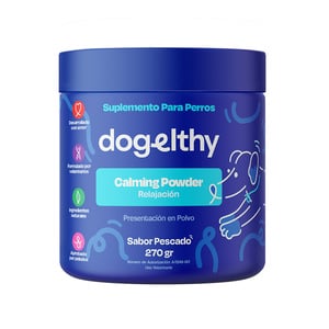 Dogelhty Calming Powder es un suplemento calmante formulado por veterinarios que contiene una poderosa mezcla de ingredientes naturales que ayudan a regular el sistema nervioso, apoyar un estado de ánimo equilibrado, mejorar la calidad del sueño y promover la relajación muscular. El conjunto de estos beneficios, ayuda a reducir la hiperactividad y el estrés sin causar efectos sedantes en los perros, siendo especialmente beneficioso en situaciones como viajes o visitas al veterinario. Además, es libre de granos, rellenos e ingredientes artificiales y tiene un delicioso sabor a pescado que le encantará a tu mejor amigo.