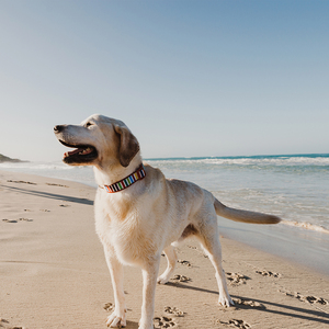 La esencia veraniega de las playas australianas, llenas de colores vibrantes, se encuentra en la colección Scooby. Este collar está hecho de neopreno, lo que lo hace ideal tanto para paseos en la nieve como en la playa. Su material permite que se seque rápidamente, brindando confort a tu mascota. Completa la colección con la correa, el arnés y el adaptador de cinturón de seguridad a juego, que se venden por separado.