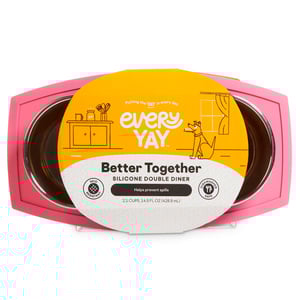 El comedero doble de silicona rosa EveryYay Better Together con cuencos de acero inoxidable mantiene la comida y el agua en un solo lugar. Incluyendo 2 tazones de acero inoxidable, este comedero doble está diseñado con una base de silicona flexible para ayudar a contener los líos a la hora de comer. También puedes meter el juego directamente en el lavavajillas para mantener la mesa limpia y agradable entre banquetes.