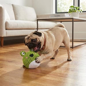 HugSmart Farm Friendz Rana Sonriente de Peluche con Pelota Interior para Perro, Mediano