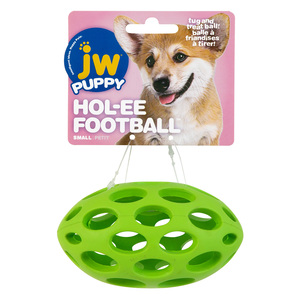 JW® Hol-ee® Football es un juguete para perros divertido y versátil con la durabilidad que has estado buscando. El caucho le da fuerza, rebote y una textura suave, mientras que el diseño abierto único te permite guardar algunos premios en el interior para que tu perro se entretenga. Este es un juguete multiuso, no tóxico, duradero, de goma y súper elástico.