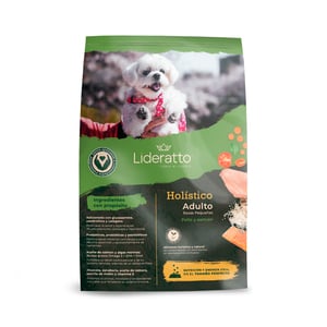 Lideratto Adulto Razas Pequeñas receta Pollo y Salmón es un alimento natural, holístico y funcional diseñado para mantener la salud y vitalidad de los pequeños de la casa. Cada ingrediente tiene un propósito: mejorar su calidad de vida con el balance nutricional perfecto para fortalecer sus huesos y articulaciones, optimizar su digestión, fortalecer su inmunidad y mantener sus músculos, piel y pelo espectaculares. Hecho en México, Lideratto ofrece una deliciosa croqueta de fácil digestión, en el tamaño perfecto que tu pequeño goce de salud y la vitalidad a tu lado.