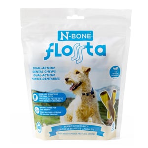 N-Bone Flossta Premios Dentales de Acción Dual Sabor Crema de Maní para Perro, 15 Piezas