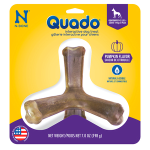 Quado de N-Bone es un premio interactivo que te ayudará a brindar a tu canino toda la diversión de un juguete interactivo con las ventajas de una super herramienta para el cuidado bucal, un premio completamente digestible hecho con ingredientes naturales complementados con un diseño ergonómico ideal para ayudar a reducir el sarro y la placa, proporcionar un aliento fresco al tiempo que mantiene a tu perro entretenido y ayuda a redireccionar comportamientos destructivos.