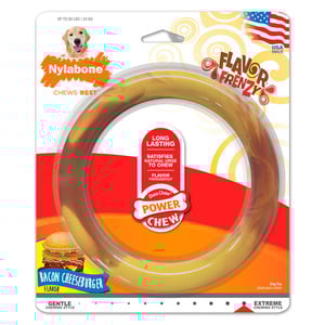 Nylabone Power Chew Juguete Masticable Diseño Aro Sabor Hamburguesa con Tocino para Perro, Grande
