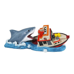 Trae algo de acción y emoción a tu acuario con la icónica escena de ataque en barco de Tiburón! ¡Este adorno de acuario es ideal para cualquiera que ame la franquicia Jaws o cualquier temática náutica y de playa!. Nuestros adornos para acuarios se inspeccionan teniendo en cuenta la seguridad de sus peces. El material utilizado es seguro tanto para acuarios de agua dulce como de agua salada. También cuentan con una base resistente que los mantiene conectados al sustrato de tu acuario. Simplemente limpie y enjuague las decoraciones del acuario con agua cuando esté limpiando su acuario. Nunca use jabón, ya que las partículas residuales de jabón pueden dañar a sus peces. ¡Esta emocionante decoración agregará instantáneamente emoción y suspenso a su acuario!