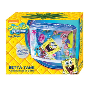 Este divertido acuario de plástico de Bob Esponja es ideal para acuaristas principiantes y niños. El tamaño perfecto para escritorios, mostradores y otras áreas pequeñas, el acuario de 1.8 L. El kit de acuario cuenta con una cubierta, una tapa de liberación de agua para facilitar los cambios de agua, un fondo colorido y divertidas pegatinas para que las agregues. Hecho específicamente para peces de agua dulce, el acuario es perfecto para peces pequeños como bettas. El acuario o bettera es fácil de montar y mantener, así que únete a Bob Esponja en su aventura submarina con esta pequeña pecera, de Penn Plax.